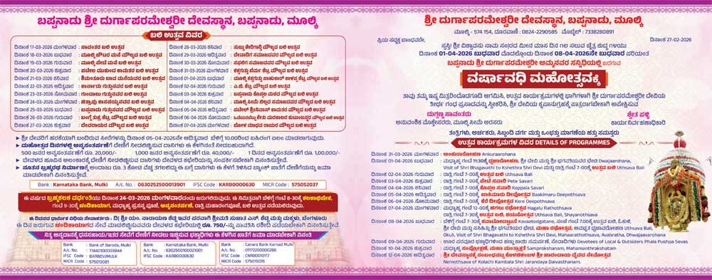 ಶ್ರೀ ದುರ್ಗಾಪರಮೇಶ್ವರೀ ದೇವಸ್ಥಾನ, ಬಪ್ಪನಾಡು, ಮೂಲ್ಕಿ ವರ್ಷಾವಧಿ ಮಹೋತ್ಸವ